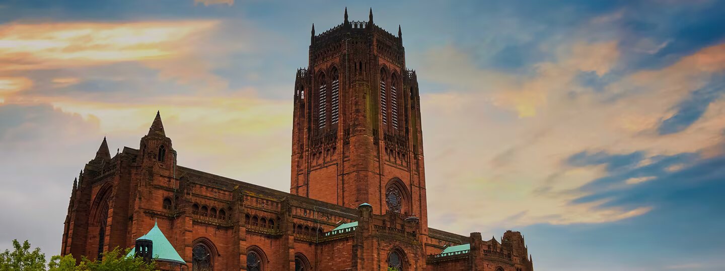 Três igrejas se destacam em Liverpool. A Catedral Anglicana, moderna, foi iniciada em 1929 e concluída em 1967, com uma torre cilíndrica de 60 metros de diâmetro e 100 metros de altura.