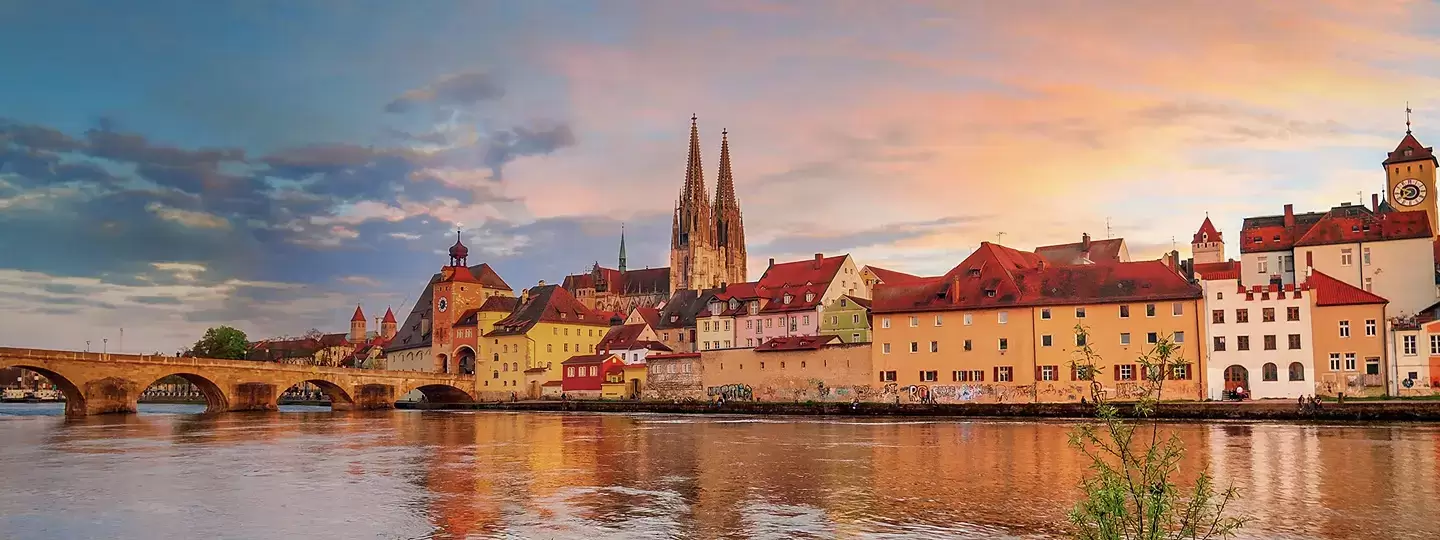Regensburg, Alemanha, é uma cidade histórica às margens do rio Danúbio, na Baviera. Conhecida por seu centro medieval preservado, Patrimônio Mundial da UNESCO, encanta com a Catedral de São Pedro e a Ponte de Pedra (Steinerne Brücke), um marco do século XII.