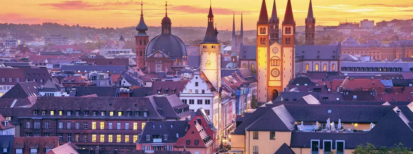 Würzburg, Alemanha, é uma cidade barroca às margens do rio Main, na Baviera. Conhecida pela Residência de Würzburg, um palácio UNESCO com jardins exuberantes, e pela Fortaleza de Marienberg, domina com sua história medieval. Sua localização entre vinhedos a torna um centro de vinho franconiano e cultura.
