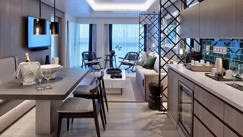 Essas residências de luxo de seis andares são as primeiras desse tipo na frota. Cada um oferece um espaço de 950 pés quadrados de esplendor de dois andares, além de um quarto e dois banheiros - perfeito para até quatro pessoas. Nessas vilas privativas à beira-mar, a vida interna e ao ar livre são perfeitamente combinadas, com dois andares de janelas que dão para o terraço e a piscina de imersão para vistas incríveis além. -